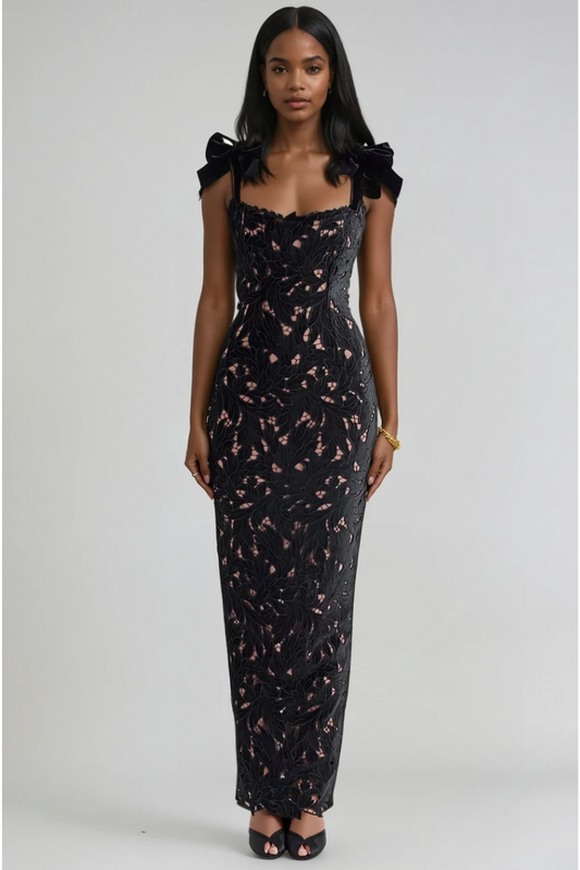 Iris Bow Strap Gown – Midnight Bloom