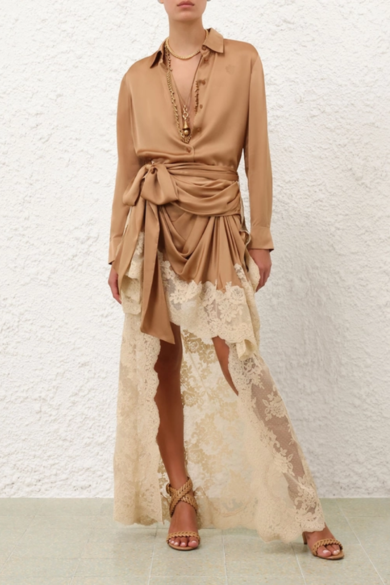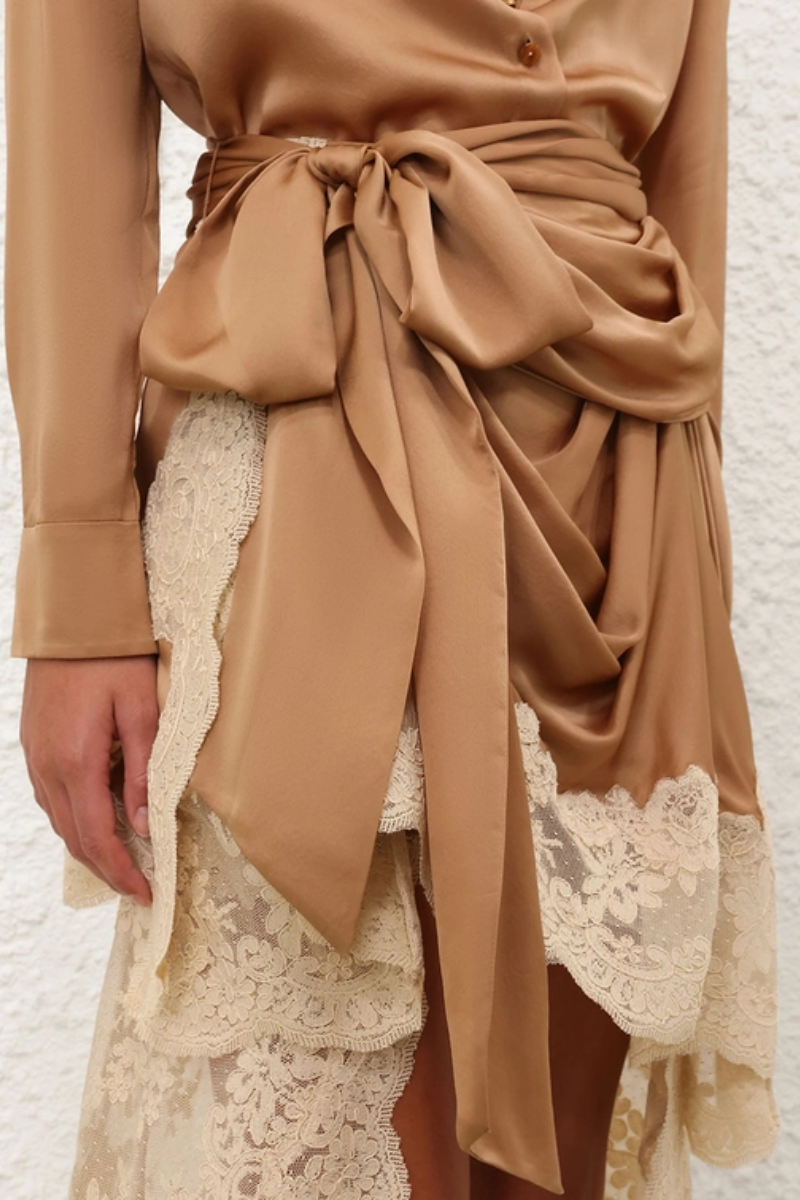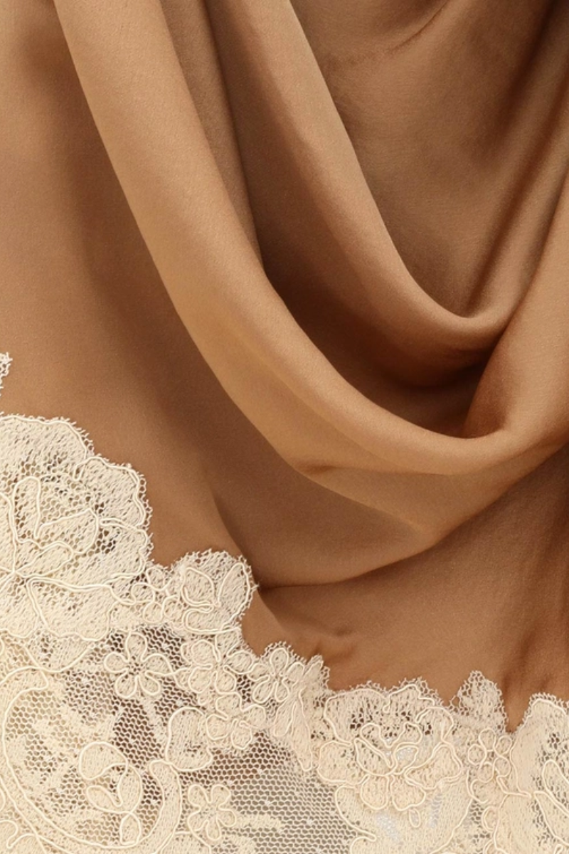 "Seraphina" redefines allure with its delicate lace bodice and cascading silk drapery. Perfect for refined occasions, this set embodies timeless sophistication, leaving an unforgettable impression of grace and poise.